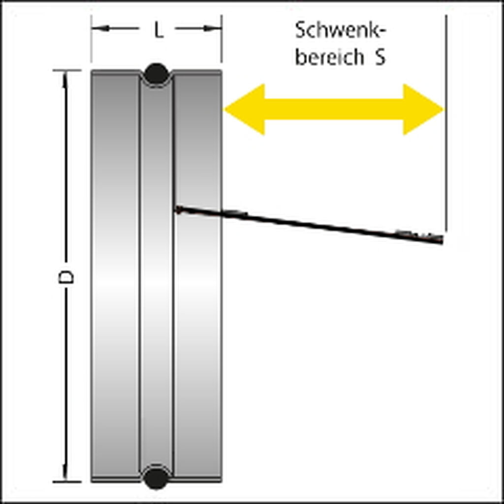 Bezeichnung DN Durchmesser (mm) L (mm) Schwenkbereich (mm)